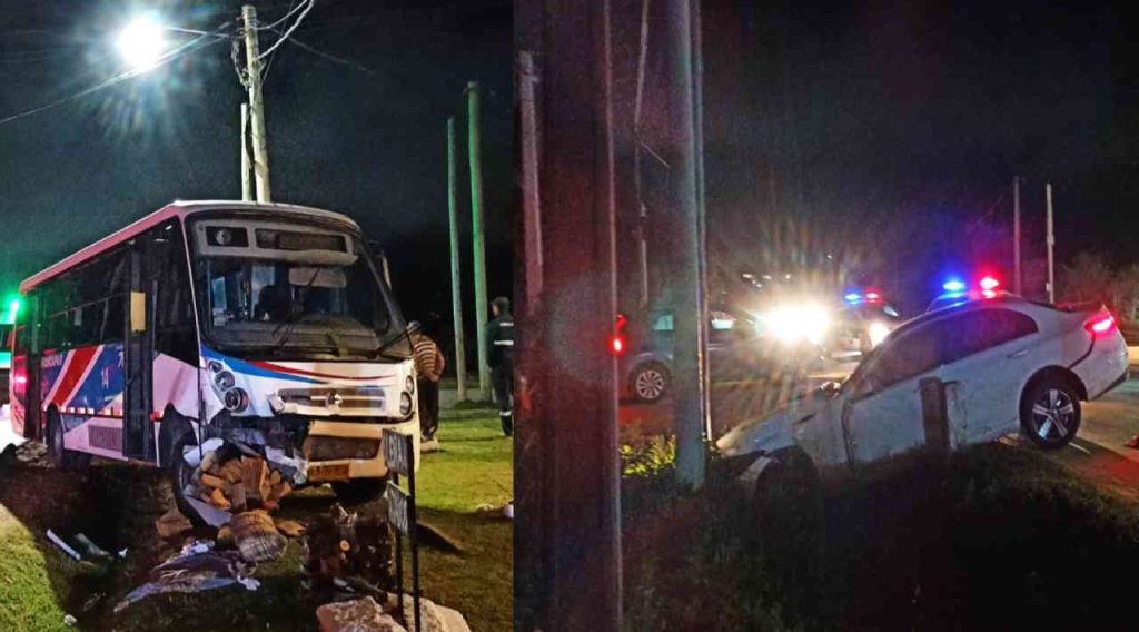 Un siniestro de tránsito se registró en el cruce de las rutas 37 y 73, donde colisionaron un ómnibus y un automóvil. Al lugar concurrió personal policial y unidades de emergencia.