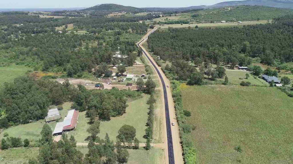 Se colocó una capa granular de balasto y ahora se desarrolla el tratamiento bituminoso.