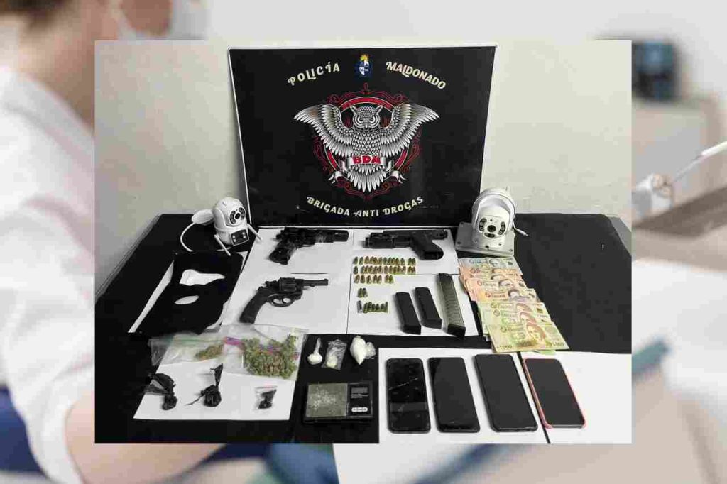 La Brigada Departamental Antidrogas desarticuló una red dedicada a la venta de drogas en Punta del Este, en el marco de la Operación “Luna Llena”. Durante varios allanamientos realizados el 3 de octubre, se incautaron cocaína, marihuana, armas de fuego, dinero y teléfonos celulares.
