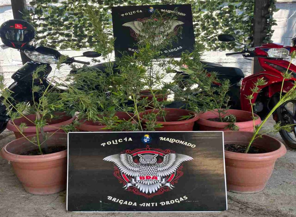 Posteriormente, con orden judicial, se realizó un allanamiento en su domicilio, ubicado en la zona de Punta Colorada, donde se incautaron, desde un invernadero, diez plantas de marihuana, tres recipientes de vidrio con sustancia vegetal, un envoltorio con sustancia blanca, una balanza de precisión y un envoltorio de nailon que contenía sustancia cristalina.