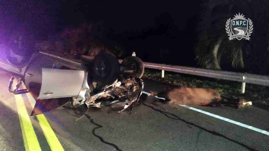 El domingo 5 de octubre se registraron dos siniestros de tránsito en rutas del país, ambos provocados por embestida de equinos sobre la vía, con resultado de lesiones leves para los ocupantes de los vehículos.