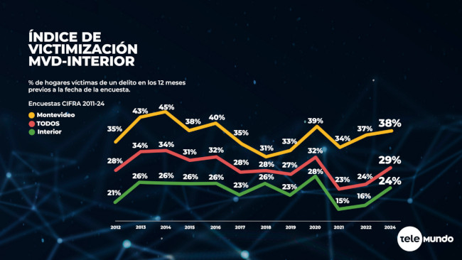 “En Montevideo, el 38% de los hogares fue víctima de algún asalto y en el interior lo fue el 24%. En el último año se observa cierta estabilidad en la capital y un crecimiento grande en el interior, donde el índice trepa de 16 a 24%”, analiza Cifra.
