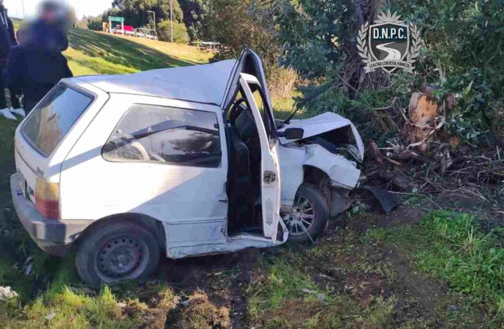 Según la denunciante, un automóvil que circulaba en dirección hacia Canelones se salió de la ruta y colisionó contra la raíz de un árbol.