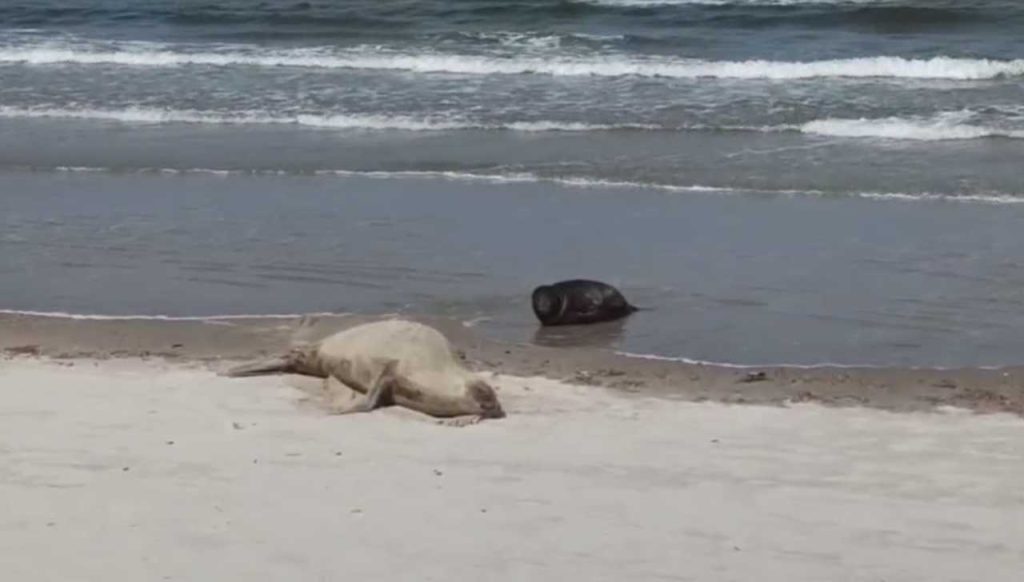 El pequeño elefante marino Francisquito se cambió de ubicación en la playa de Piriápolis, desplazándose unos cien metros hacia el Argentino Hotel.