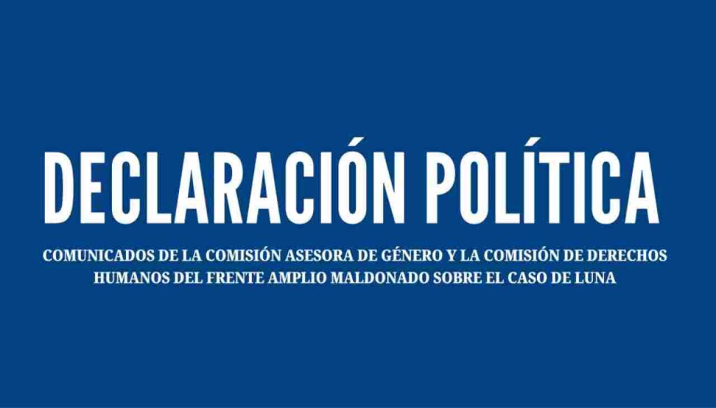 La Mesa Política Departamental del Frente Amplio acompaña los comunicados presentados por la Comisión Asesora de Género y la Comisión de Derechos Humanos de la fuerza política respecto a la tragedia ocurrida esta semana con la muerte de Luna.