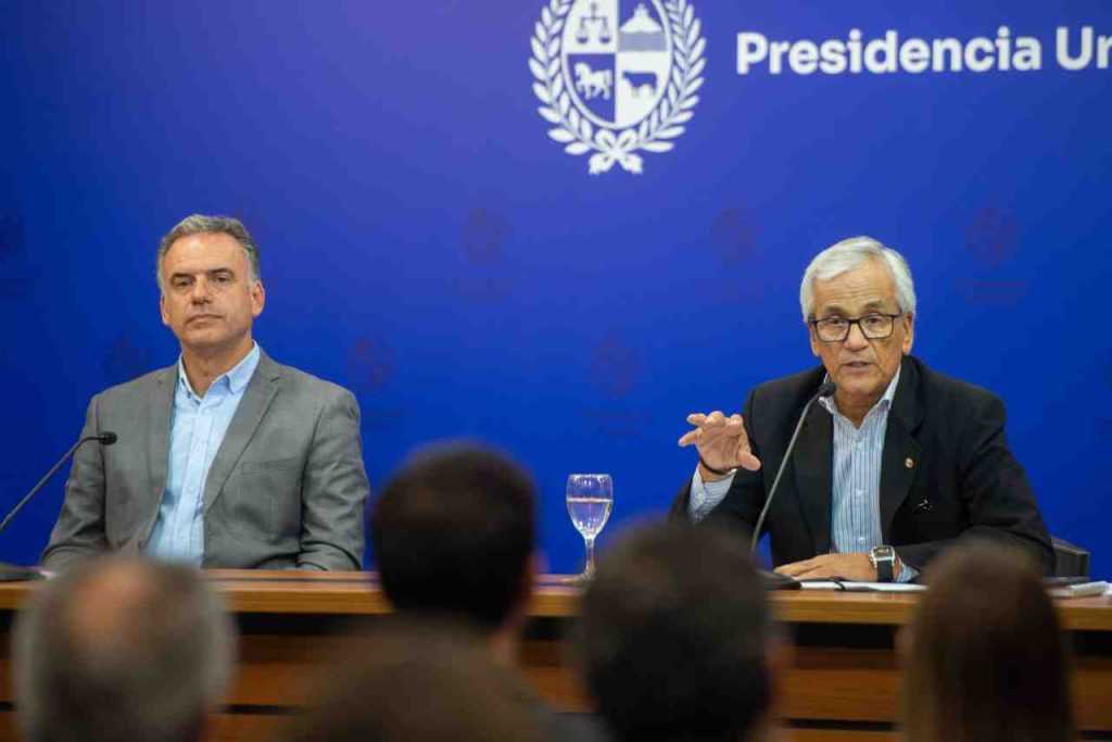 El presidente de la República, Yamandú Orsi, junto al ministro de Trabajo y Seguridad Social, Juan Castillo, presentó este jueves 19 en Torre Ejecutiva el proyecto de Ley de Empleo Integral, durante una conferencia de prensa, en la que dieron a conocer los principales contenidos de la iniciativa, así como las medidas orientadas a promover el empleo y el acceso al mercado laboral.