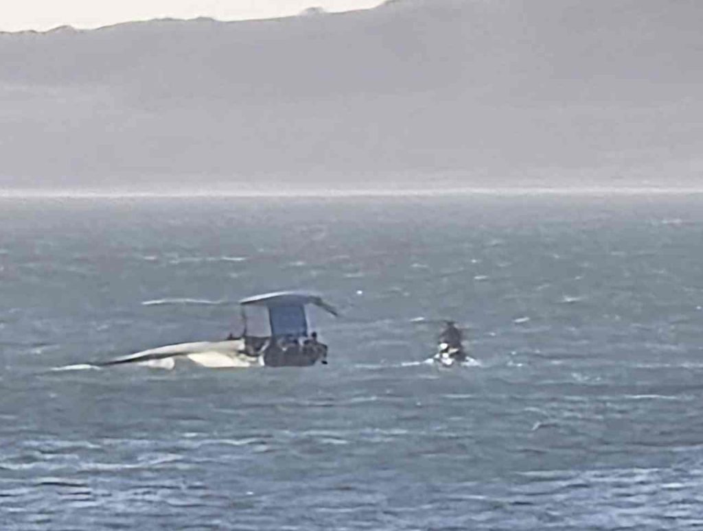 El hecho ocurrió cuando la embarcación volcó por causas que se investigan. El guardavidas apostado en la zona intervino de inmediato y logró trasladar a los cinco ocupantes hasta la orilla en sucesivos viajes.