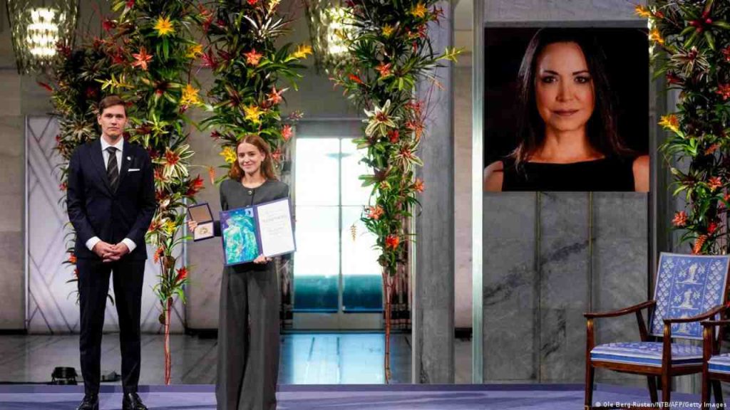 La hija de la líder opositora María Corina Machado recibió en Oslo el Nobel de la Paz otorgado a su madre.