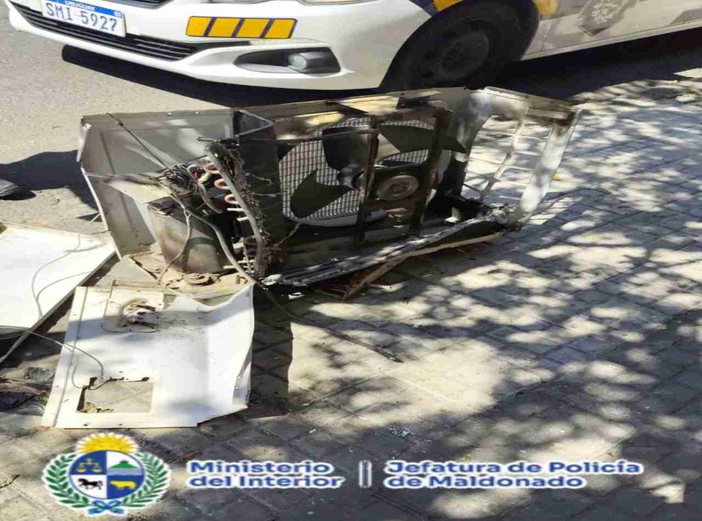De forma inmediata concurrió al lugar personal de la Unidad de Respuesta Policial Móvil (URPM) de la Zona Operacional II, que constató el daño del equipo en la vía pública. Con los datos aportados, se realizó una recorrida por la zona, logrando intervenir en las calles Tammaro y Leonardo Olivera a un hombre que resultó ser D.S.P.R., de 38 años de edad, poseedor de antecedentes penales, quien llevaba en sus manos un radiador de aire acondicionado.