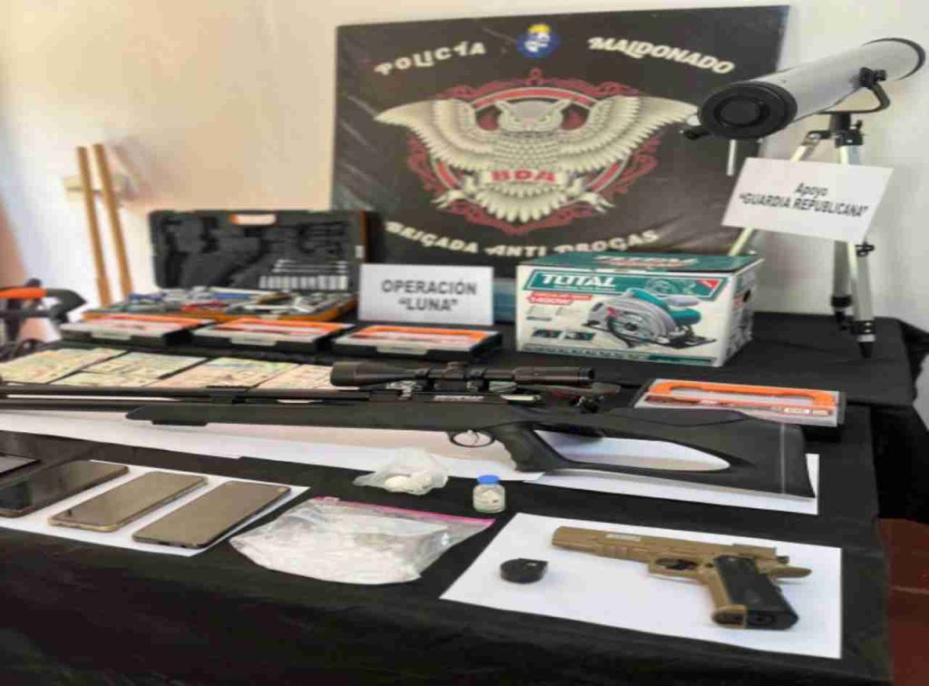 El rápido accionar policial culminó con la realización de allanamientos que permitieron la detención de un hombre mayor de edad, poseedor de antecedentes penales, así como la incautación de armas de fuego, municiones, sustancias estupefacientes, dinero en efectivo y elementos utilizados para el fraccionamiento de drogas. Asimismo, se logró la recuperación de numerosos objetos hurtados en el departamento de Rocha.