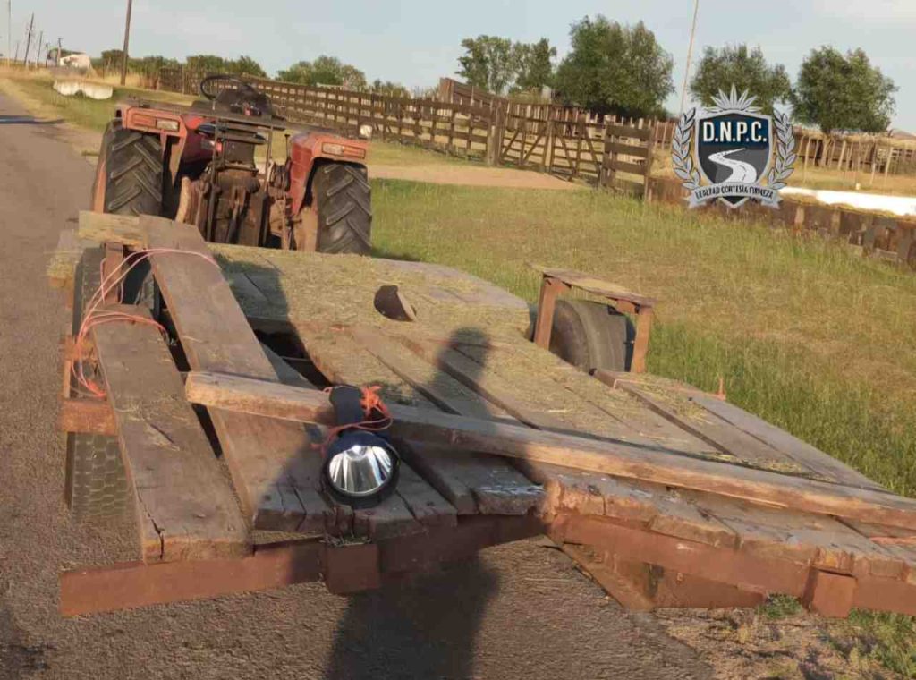 Por causas que aún se investigan, se produjo una colisión por alcance en la que un birrodado impactó contra la parte trasera de una zorra que era remolcada por un tractor. Ambos vehículos circulaban en el mismo sentido, de este a oeste.