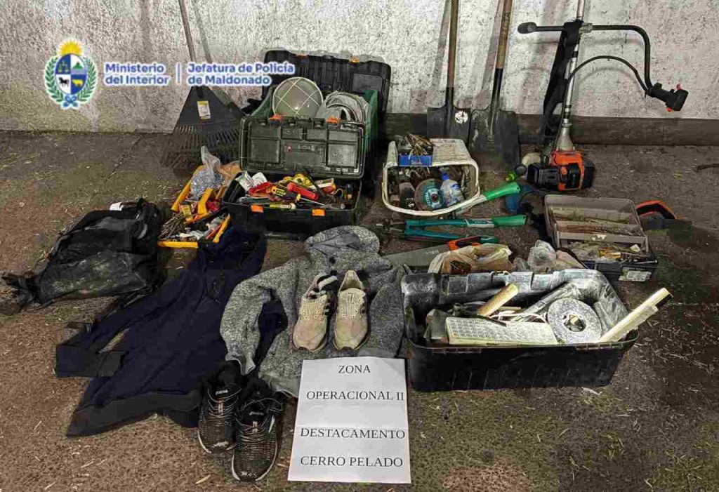 En la tarde de ayer se concretó la detención de un hombre de 35 años, sin antecedentes penales. Durante el procedimiento se incautaron varias herramientas, entre ellas tres valijas, un cajón con pinzas, martillos, destornilladores, discos de corte, mechas de pared, elementos de grifería (caños, codos, colillas), tijeras de mano, un serrucho, una cizalla, una uña sacaclavos, palas, una desmalezadora, un rastrillo y otros efectos de interés para la investigación.