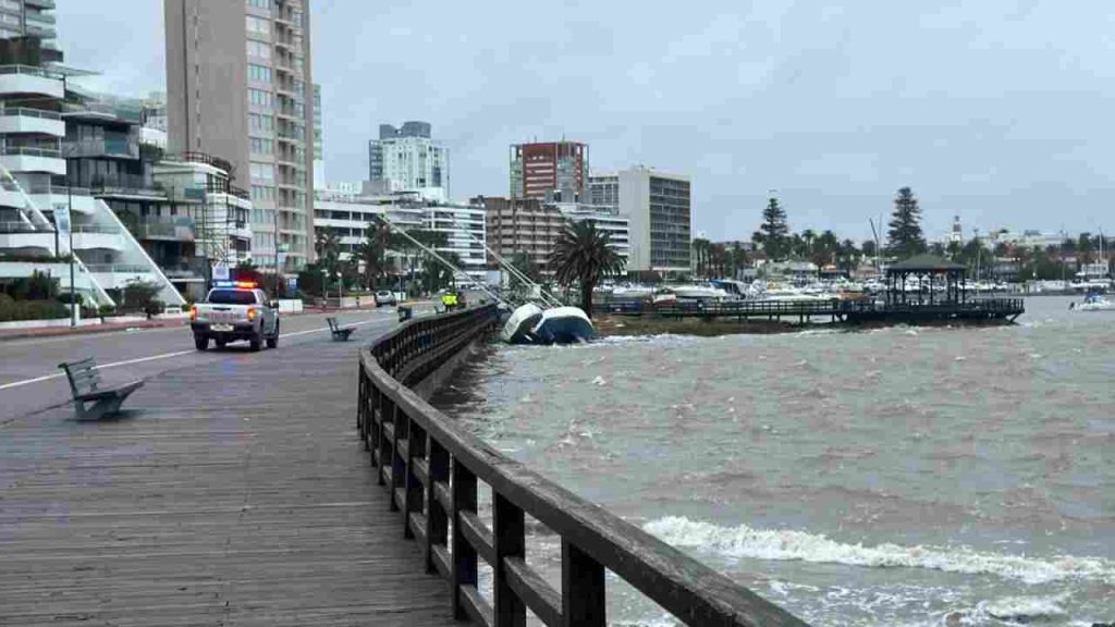 Durante el temporal de viento registrado el lunes, tres veleros se soltaron de sus amarras en la costa de Punta del Este, resultando dos de ellos varados sobre la Rambla.
