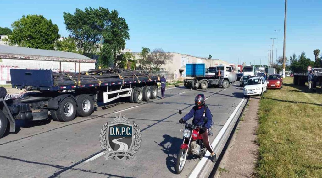 Un siniestro de tránsito en los Accesos a Montevideo (km 2) a las 07:43 horas del martes dejó un hombre de 55 años lesionado con traumatismo en la pierna izquierda, quien fue derivado al Hospital Evangélico. El hecho involucró a dos camiones y un automóvil.