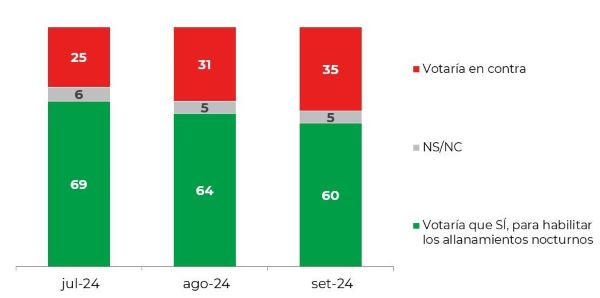 El 27 también se someterá a plebiscito la iniciativa para habilitar los allanamientos nocturnos que muestra una estructura de apoyos completamente diferente al de la seguridad social, aunque similar tendencia a la baja.